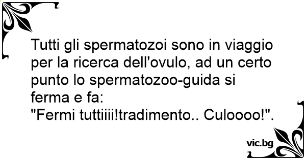 Tutti gli spermatozoi sono in viaggio per la ricerca dell'ovulo, ad un certo punto lo spermatozoo-guida si ferma e fa:
