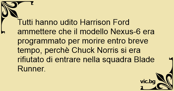 Tutti hanno udito Harrison Ford ammettere che il modello Nexus-6 era programmato per morire entro breve tempo, perchè Chuck Norris si era rifiutato di entrare nella squadra Blade Runner.