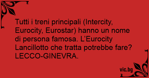Tutti i treni principali (Intercity, Eurocity, Eurostar) hanno un nome di persona famosa. L’Eurocity Lancillotto che tratta potrebbe fare? LECCO-GINEVRA.