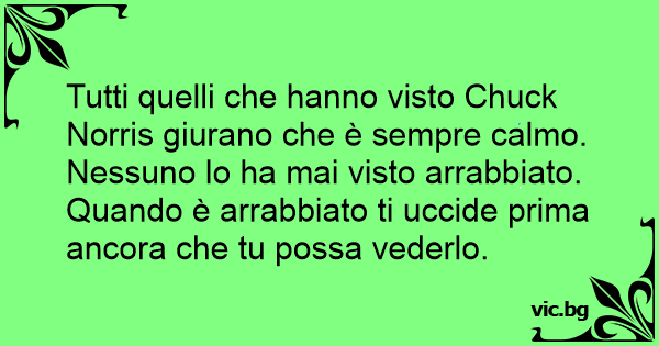 Tutti quelli che hanno visto Chuck Norris giurano che è sempre calmo. Nessuno lo ha mai visto arrabbiato. Quando è arrabbiato ti uccide prima ancora che tu possa vederlo.
