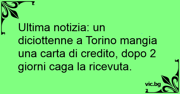 Ultima notizia: un diciottenne a Torino mangia una carta di credito, dopo 2 giorni caga la ricevuta.