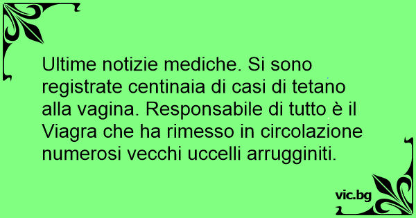 Ultime notizie mediche. Si sono registrate centinaia di casi di tetano alla vаginа. Responsabile di tutto è il Viаgrа che ha rimesso in circolazione numerosi vecchi uccelli arrugginiti.