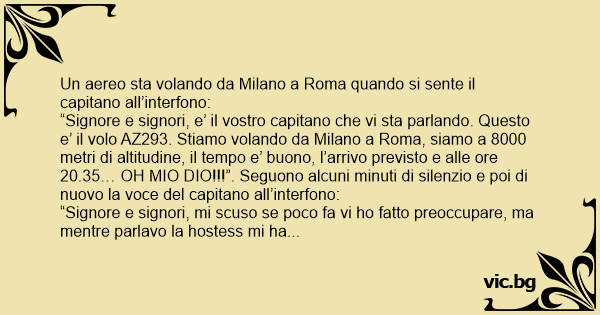 Un aereo sta volando da Milano a Roma quando si sente il capitano all’interfono: