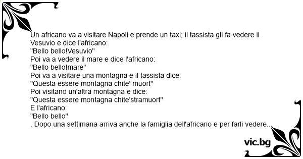 Un africano va a visitare Napoli e prende un taxi; il tassista gli fa vedere il Vesuvio e dice l'africano:
