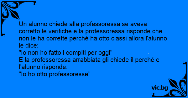 Un alunno chiede alla professoressa se aveva corretto le verifiche e la professoressa risponde che non le ha corrette perché ha otto classi allora l'alunno le dice: