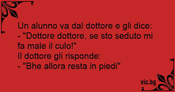 - "Dottore dottore, se sto seduto mi fa male il сulо!"
