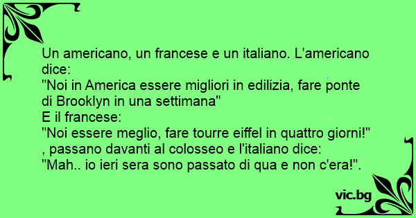 Un americano, un francese e un italiano. L'americano dice: