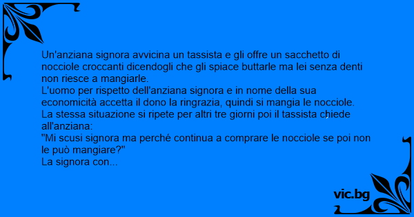 L'uomo per rispetto dell'anziana signora e in nome della sua economicità accetta il dono la ringrazia, quindi si mangia le nocciole.