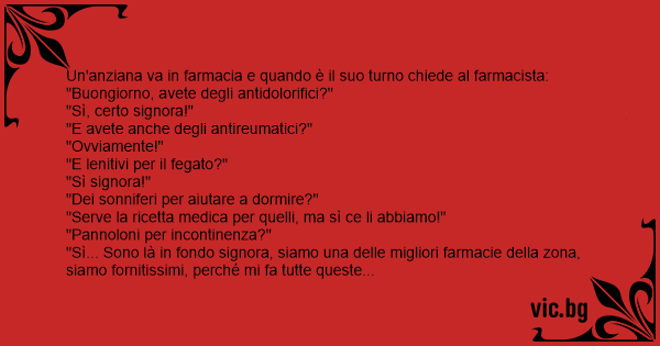 Un'anziana va in farmacia e quando è il suo turno chiede al farmacista: