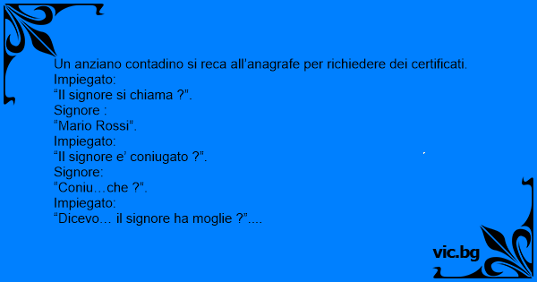 Un anziano contadino si reca all’anagrafe per richiedere dei certificati.