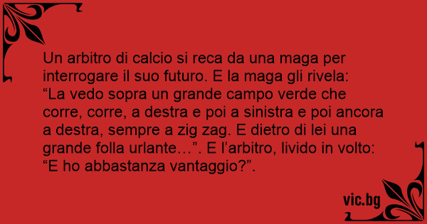 Un arbitro di calcio si reca da una maga per interrogare il suo futuro. E la maga gli rivela: