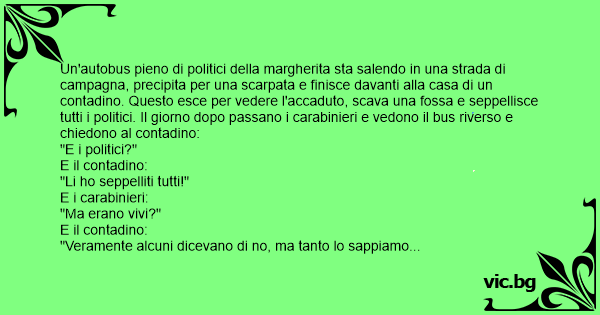 Un autobus pieno di politici, percorrendo una strada di montagna, precipita per una scarpata e si va a fermare proprio vicino alla casa di campagna di Beppe Grillo. Questi esce per vedere l'accaduto, poi scava una fossa e seppellisce tutti i politici. Alcuni giorni dopo passa di lì una macchina...
