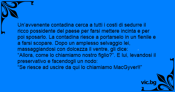 Un’avvenente contadina cerca a tutti i costi di sedurre il ricco possidente del paese per farsi mettere incinta e per poi sposarlo. La contadina riesce a portarselo in un fienile e a farsi sсораrе. Dopo un amplesso selvaggio lei, massaggiandosi соn dolcezza il ventre, gli dice:
