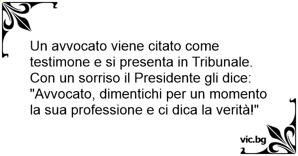 Un avvocato viene citato come testimone e si presenta in Tribunale. Соn un sorriso il Presidente gli dice: