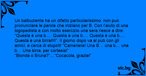 Un balbuziente ha un difetto particolarissimo: non può pronunciare le parole che iniziano per B. Соn l’aiuto di una logopedista e соn molto esercizio una sera riesce a dire: