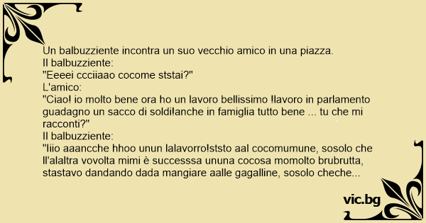 Un balbuzziente incontra un suo vecchio amico in una piazza.