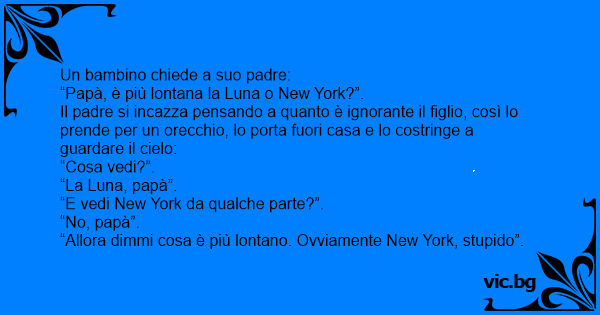 Il padre si incazza pensando a quanto è ignorante il figlio, così lo prende per un orecchio, lo porta fuori casa e lo costringe a guardare il cielo: