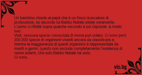 Un bambino chiede al papà che è un fisico ricercatore di professione, se secondo lui Babbo Natale esiste veramente.
