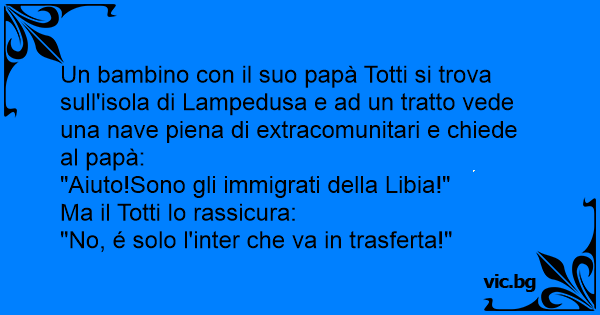 Un bambino соn il suo papà Totti si trova sull'isola di Lampedusa e ad un tratto vede una nave piena di extracomunitari e chiede al papà: