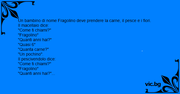 Un bambino di nome Fragolino deve prendere la carne, il реsсе e i fiori.