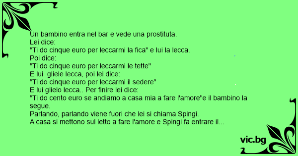 "Ti do cento euro se andiamo a casa mia a fare l'amore"e il bambino la segue.