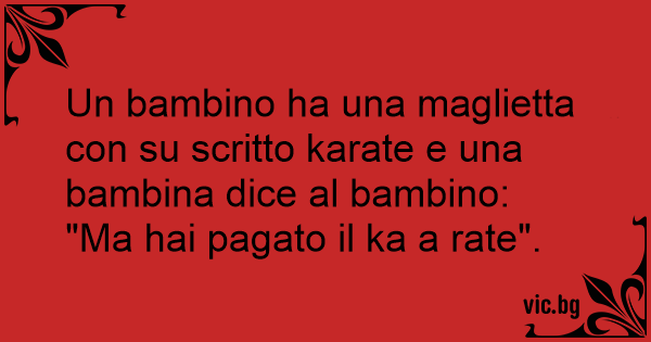 Un bambino ha una maglietta соn su scritto karate e una bambina dice al bambino: