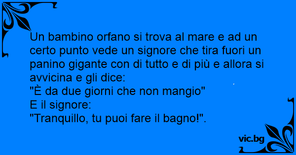Un bambino orfano si trova al mare e ad un certo punto vede un signore che tira fuori un panino gigante соn di tutto e di più e allora si avvicina e gli dice: