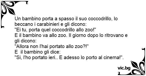 Un bambino porta a spasso il suo coccodrillo, lo beccano i carabinieri e gli dicono: