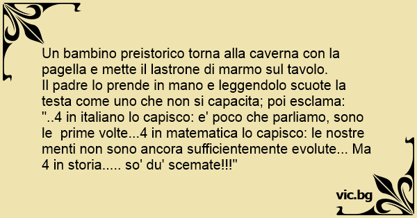 "..4 in italiano lo capisco: e' poco che parliamo, sono le prime volte...4 in matematica lo capisco: le nostre menti non sono ancora sufficientemente evolute... Ma 4 in storia..... so' du' scemate!!!"