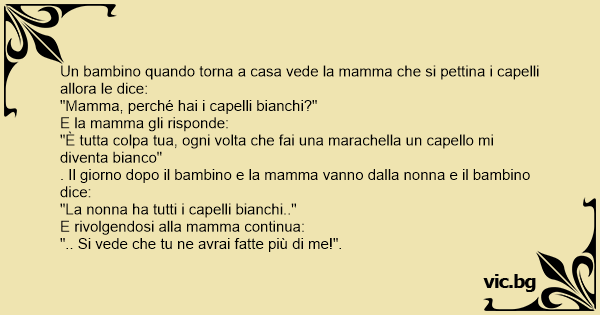Un bambino quando torna a casa vede la mamma che si pettina i capelli allora le dice: