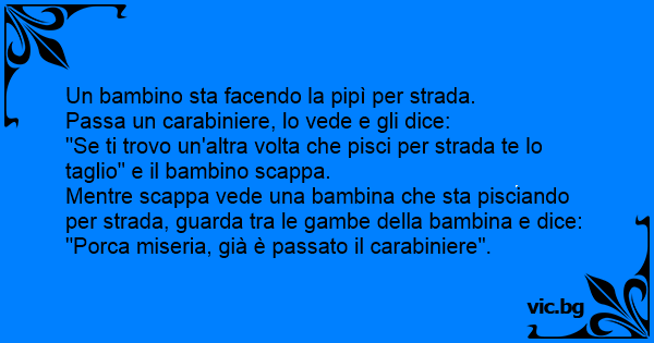 "Se ti trovo un'altra volta che pisci per strada te lo taglio" e il bambino scappa.
