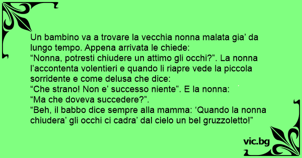 Un bambino va a trovare la vecchia nonna malata gia’ da lungo tempo. Appena arrivata le chiede: