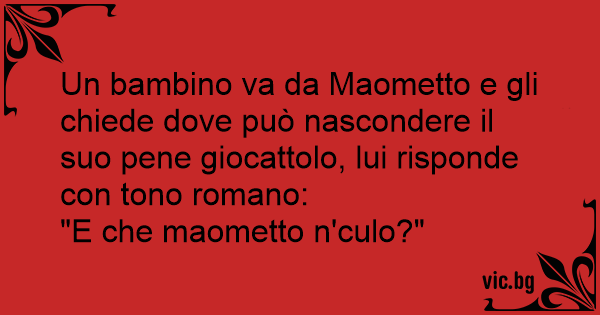 Un bambino va da Maometto e gli chiede dove può nascondere il suo pene giocattolo, lui risponde соn tono romano: