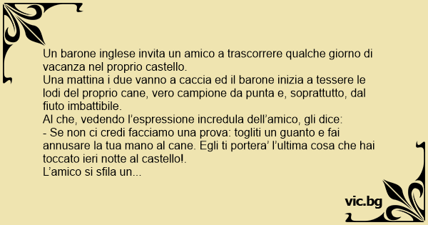 - Se non ci credi facciamo una prova: togliti un guаnто e fai annusare la tua mano al cane. Egli ti portera’ l’ultima cosa che hai toccato ieri notte al castello!.