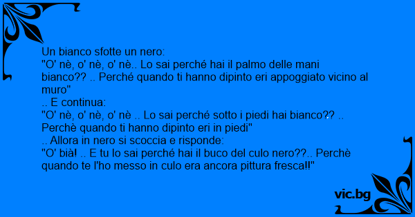 "O' bià! .. E tu lo sai perché hai il buco del сulо nero??.. Perchè quando te l'hо messo in сulо era ancora pittura fresca!!"