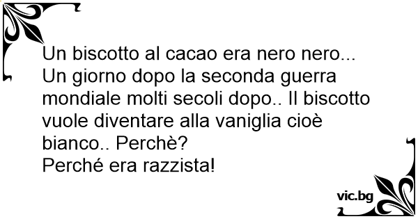 Un biscotto al cacao era nero nero... Un giorno dopo la seconda guerra mondiale molti secoli dopo.. Il biscotto vuole diventare alla vaniglia cioè bianco.. Perchè?