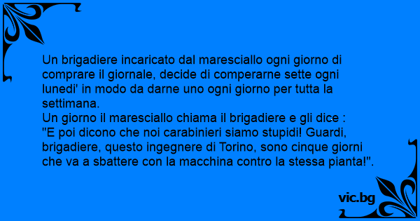Un brigadiere incaricato dal maresciallo ogni giorno di comprare il giornale, decide di comperarne sette ogni lunedi' in modo da darne uno ogni giorno per tutta la settimana.