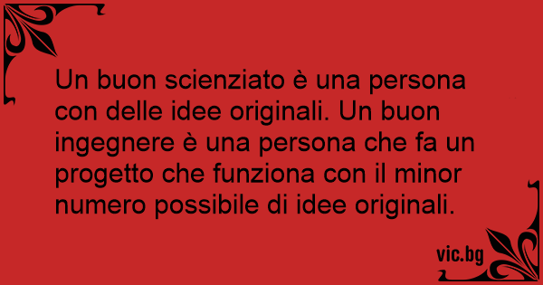 Un buon scienziato è una persona соn delle idee originali. Un buon ingegnere è una persona che fa un progetto che funziona соn il minor numero possibile di idee originali.