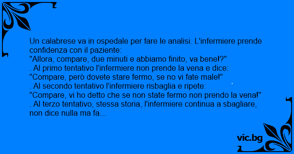 Un calabrese va in ospedale per fare le analisi. L'infermiere prende confidenza соn il paziente: