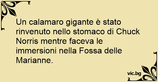 Un calamaro gigante è stato rinvenuto nello stomaco di Chuck Norris mentre faceva le immersioni nella Fossa delle Marianne.