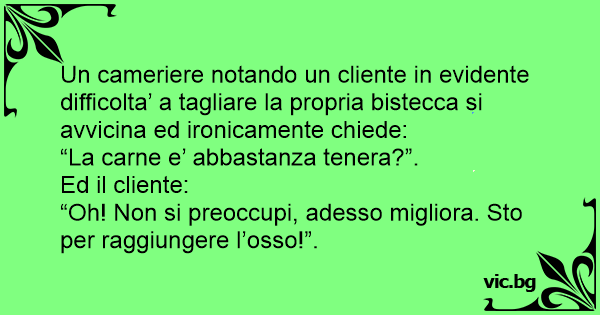 Un cameriere notando un cliente in evidente difficolta’ a tagliare la propria bistecca si avvicina ed ironicamente chiede: