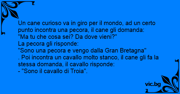 Un cane curioso va in giro per il mondo, ad un certo punto incontra una pecora, il cane gli domanda: