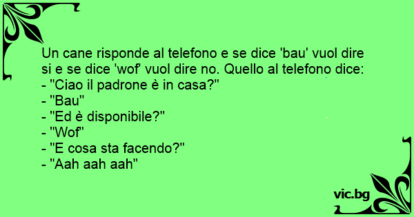 Un cane risponde al telefono e se dice 'bau' vuol dire si e se dice 'wof' vuol dire no. Quello al telefono dice: