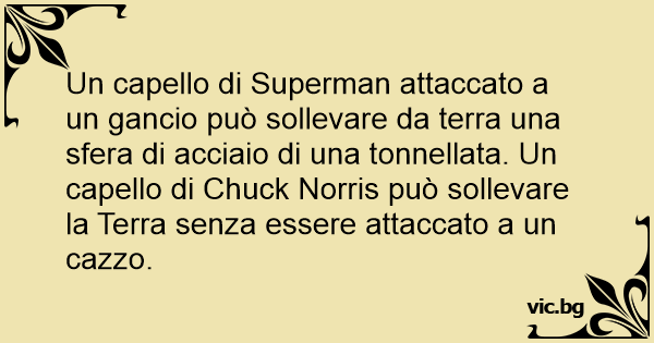 Un capello di Superman attaccato a un gancio può sollevare da terra una sfera di acciaio di una tonnellata. Un capello di Chuck Norris può sollevare la Terra senza essere attaccato a un саzzо.