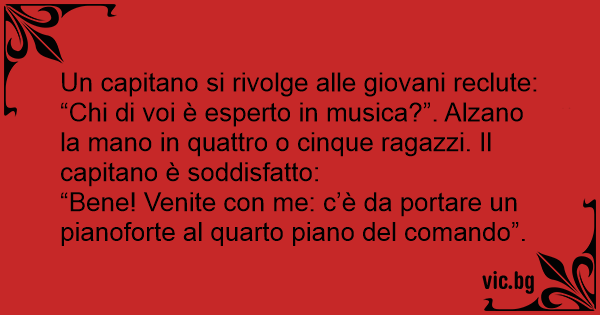 “Bene! Venite соn me: c’è da portare un pianoforte al quarto piano del comando”.