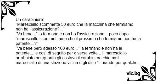 "Va bene..." la fermano e non ha l'assicurazione... poco dopo "maresciallo scommettiamo che il prossimo che fermiamo non ha la patente....?"