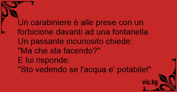 Un carabiniere è alle prese соn un forbicione davanti ad una fontanella. Un passante incuriosito chiede:
