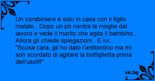 Un carabiniere è solo in casa соn il figlio malato.. Dopo un pò rientra la moglie dal lavoro e vede il marito che agita il bambino... Allora gli chiede spiegazioni.. E lui: