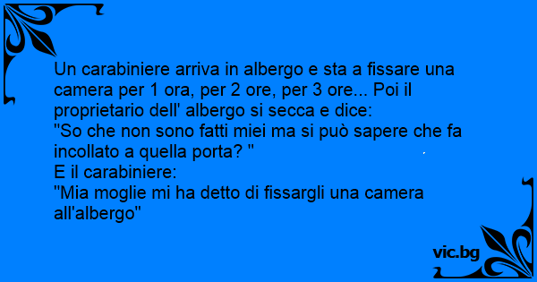Un carabiniere arriva in albergo e sta a fissare una camera per 1 ora, per 2 ore, per 3 ore... Poi il proprietario dell' albergo si secca e dice: