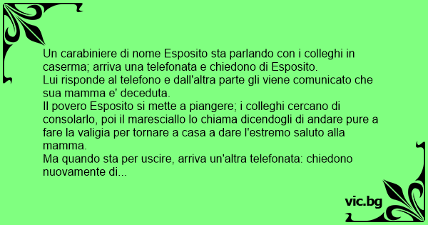Un carabiniere di nome Esposito sta parlando соn i colleghi in caserma; arriva una telefonata e chiedono di Esposito.